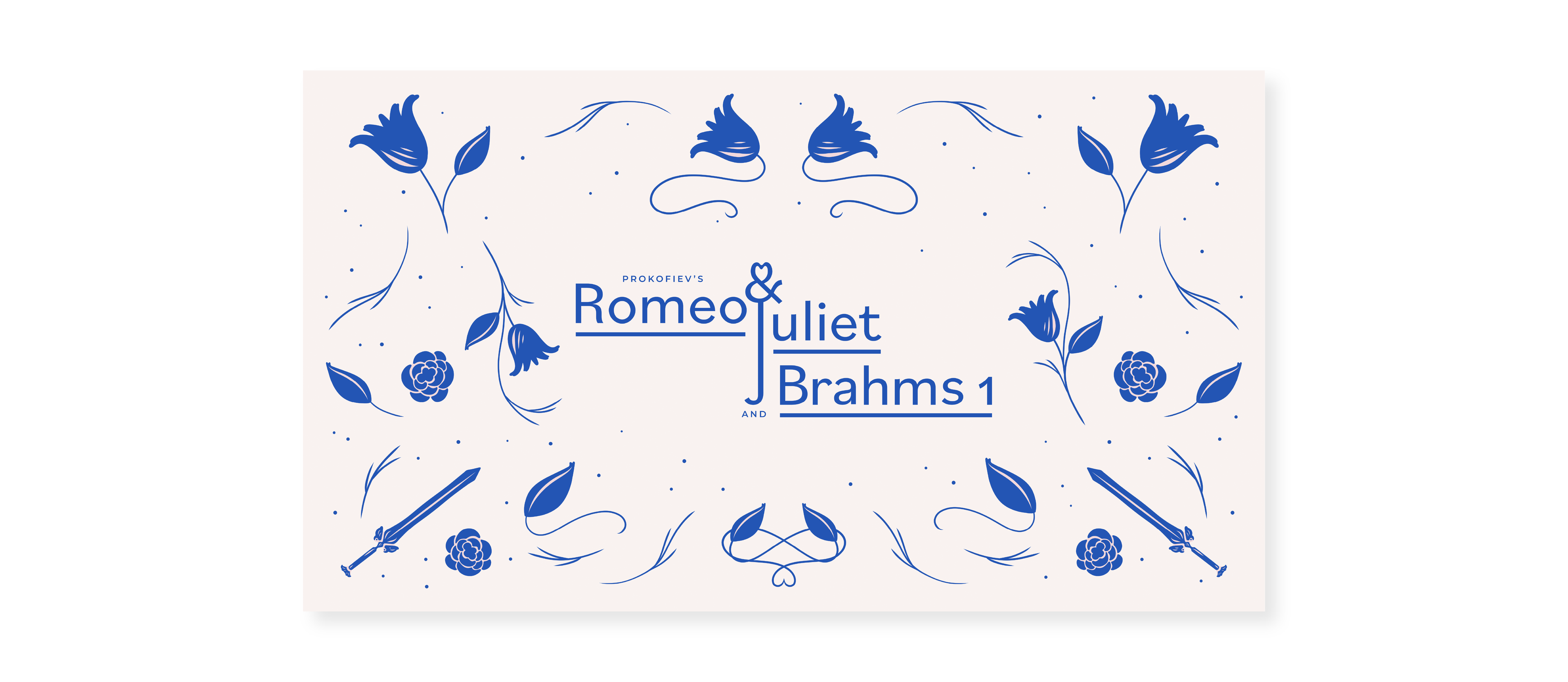 As the concert title was not finalized yet, I had to explore several typography possibilities for the two pending titles: “Romeo & Juliet” and “Triumph and Tragedy.” The explorations consist of the titles and elements of Romeo and Juliet, e.g., heart, dagger, et cetera.