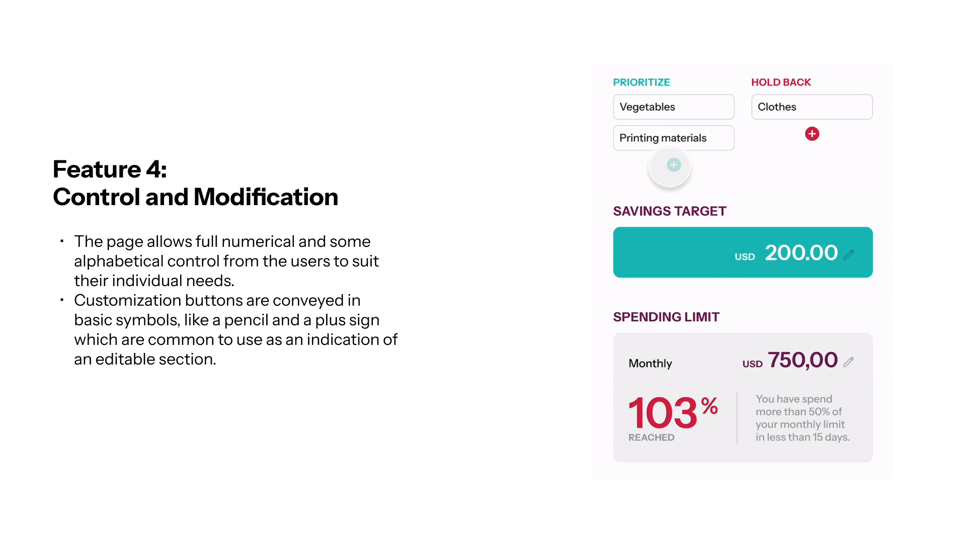 The budgeting page offers a guided interface that allows users to take as much control of the app’s mechanism in calculating data of their monthly spending.